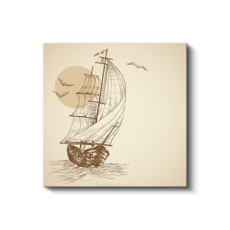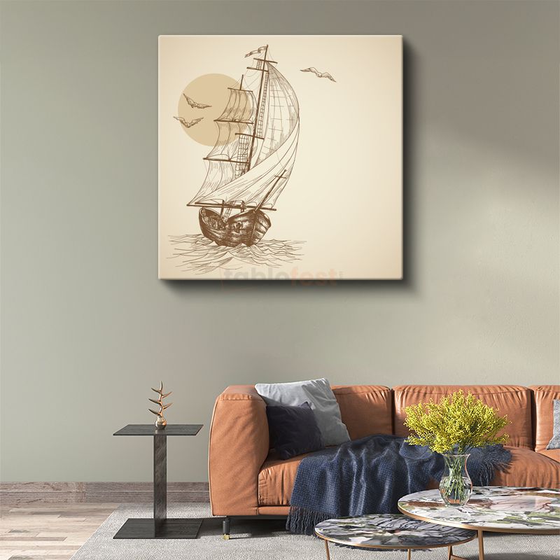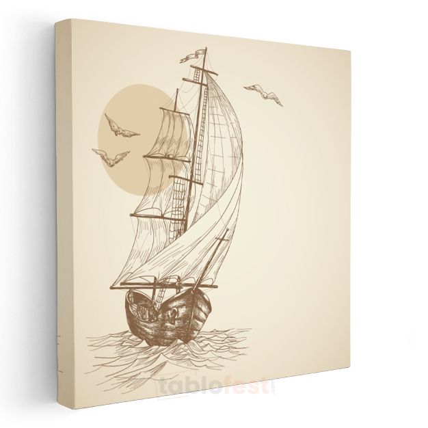 Nostaljik Yelkenli - Eskiz Tarzı Denizcilik Teması Kanvas Tablo