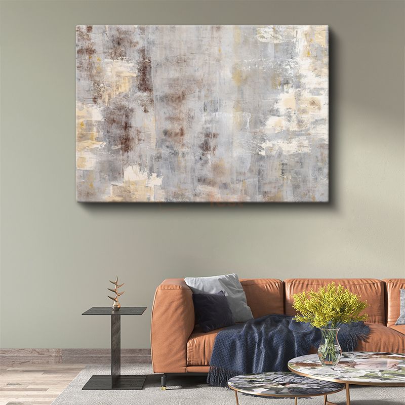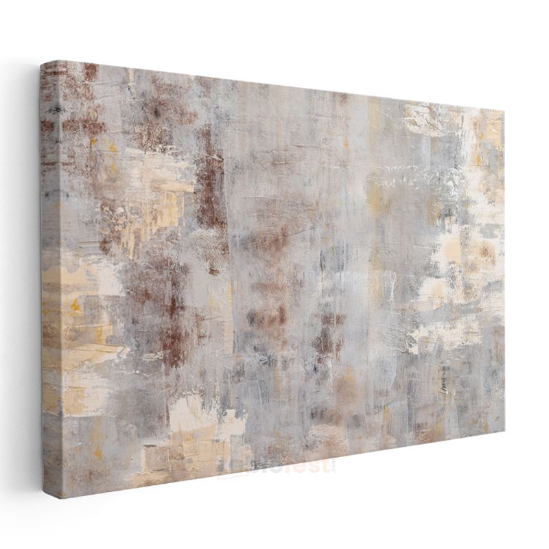 Nötr Soyut - Bej ve Gri Tonlarda Dokulu Kompozisyon Kanvas Tablo