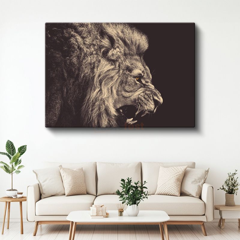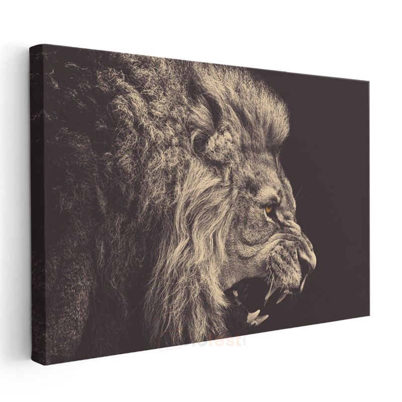 Öfkeli Aslan - Yakın Çekim Hırlayan Yırtıcı Portresi Kanvas Tablo