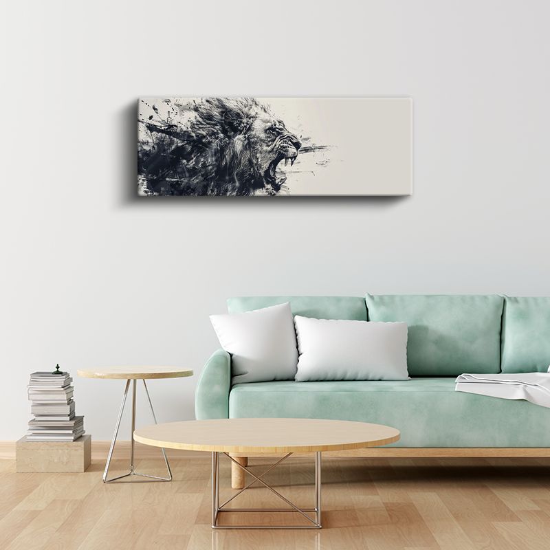 Öfkenin Sesi - Kükreyen Aslan Profili Kanvas Tablo