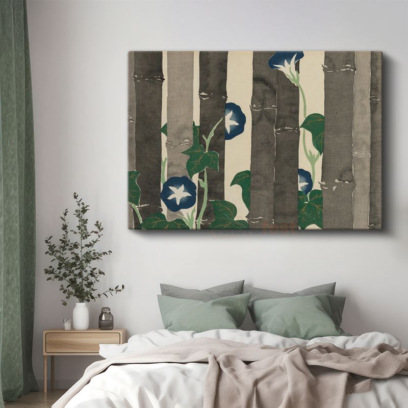 Ogata Korin - Bambu ve Sabah Sefası Çiçekleri Kanvas Tablo