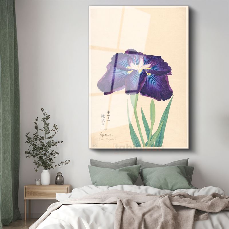 Ohara Koson - Mor İris Çiçeği Japon Tarzı İllüstrasyon Cam Tablo