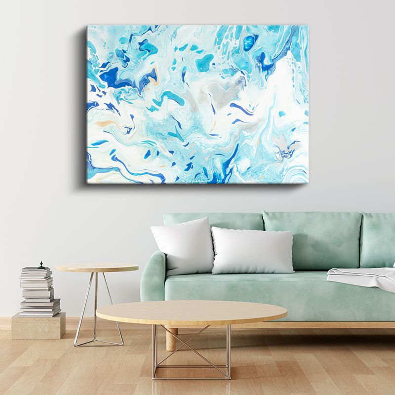Okyanus Akıntısı - Mavi Mermer Efekti Kanvas Tablo