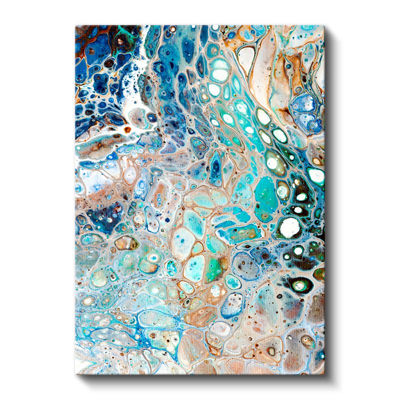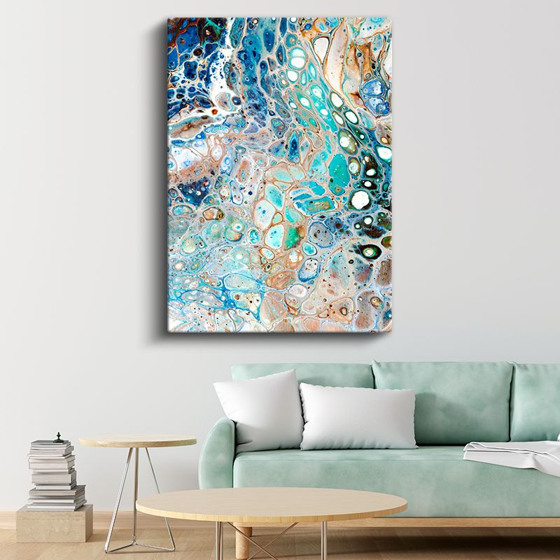 Okyanus Akıntısı - Sıvı Mavi Turkuaz Soyut Desen Kanvas Tablo