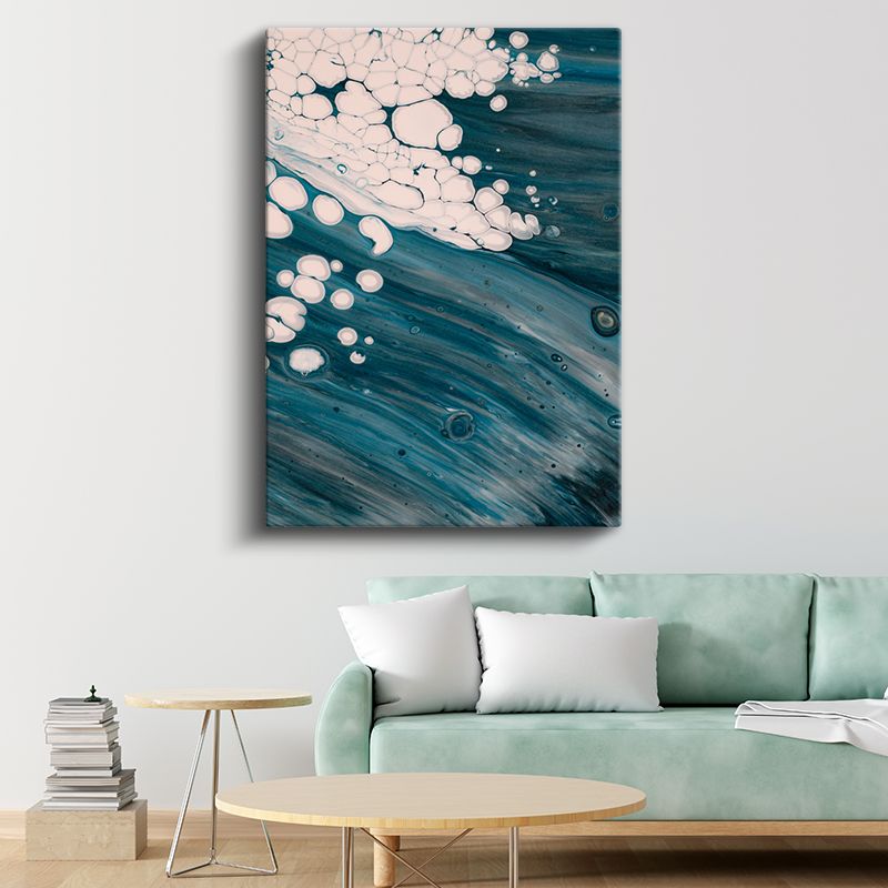 Okyanus Akışı - Mavi Tonları Sıvı Soyut Kanvas Tablo