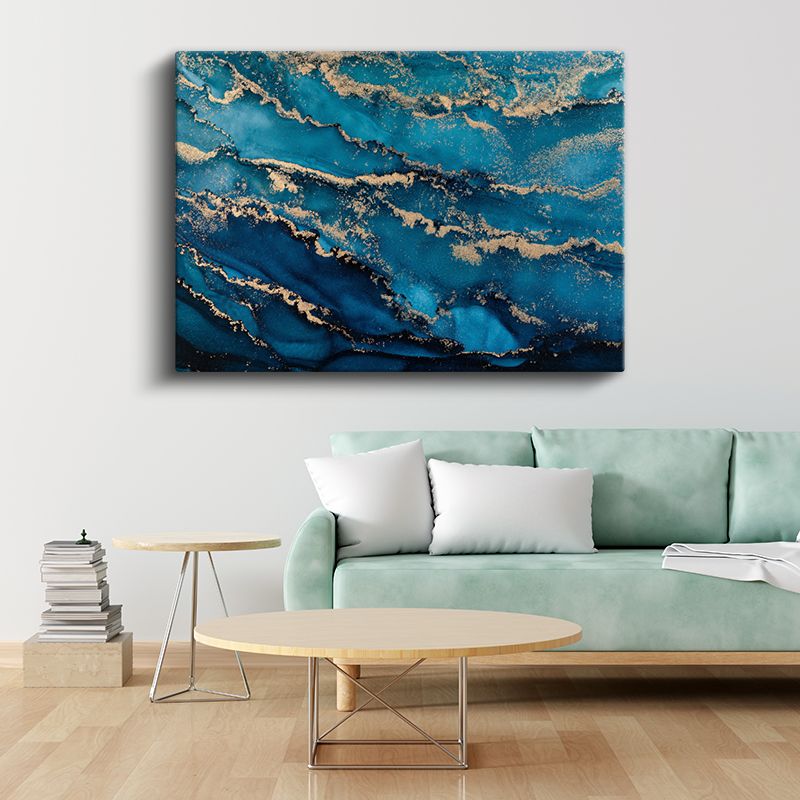 Okyanus Altını - Turkuaz Dalgalar Soyut Kanvas Tablo