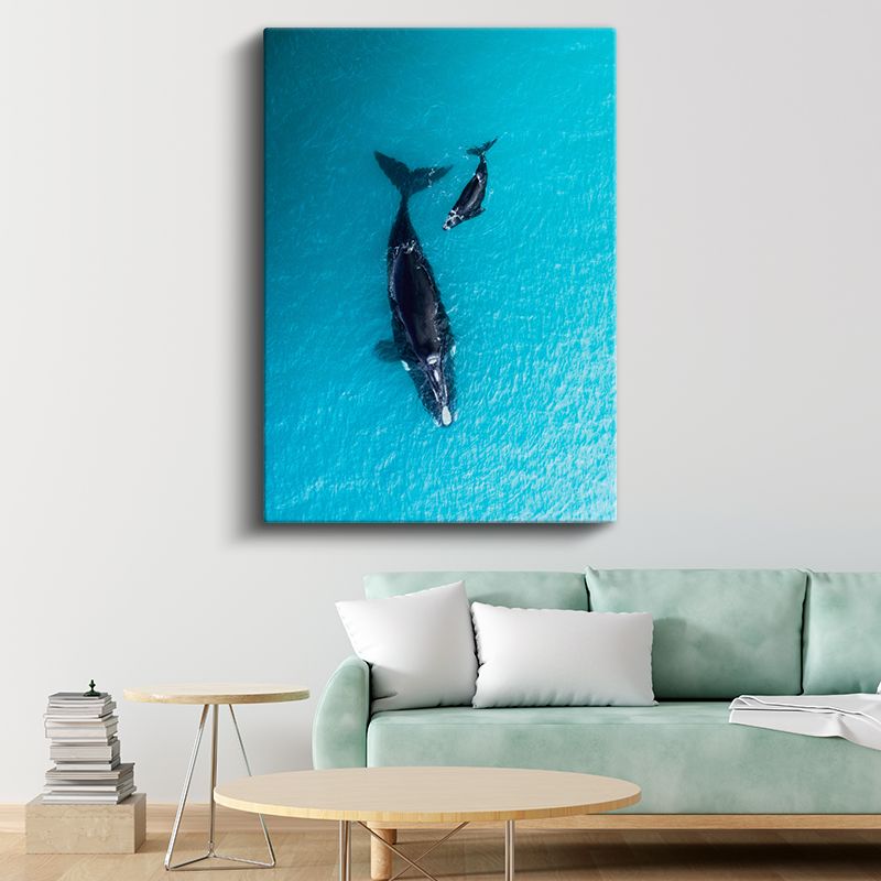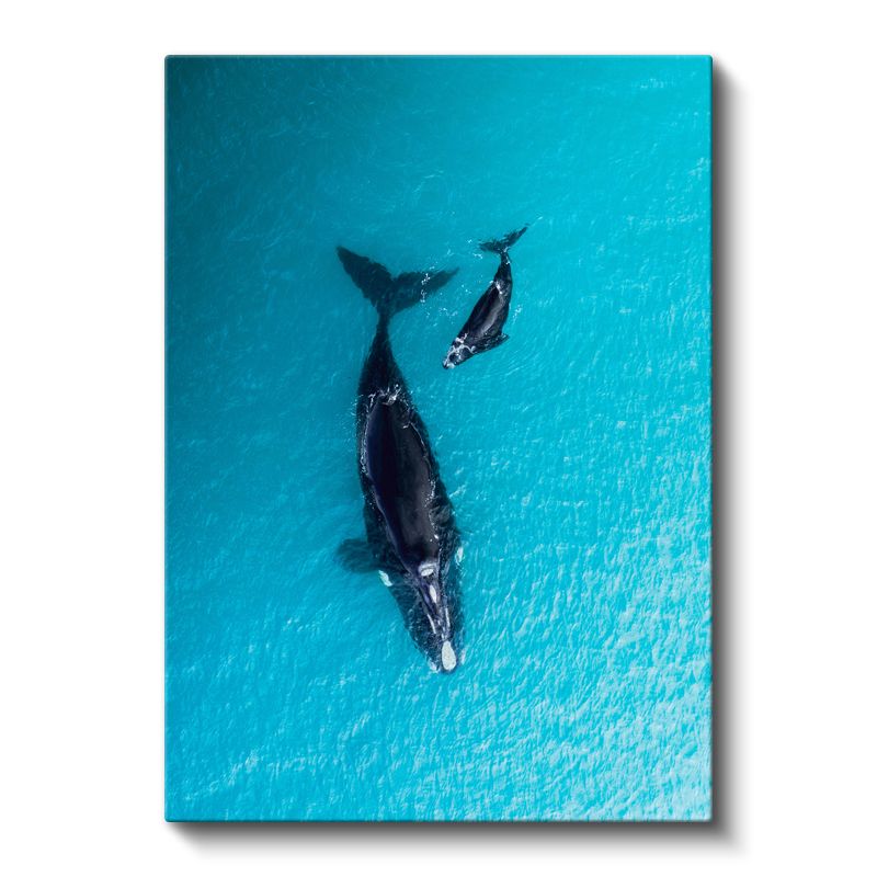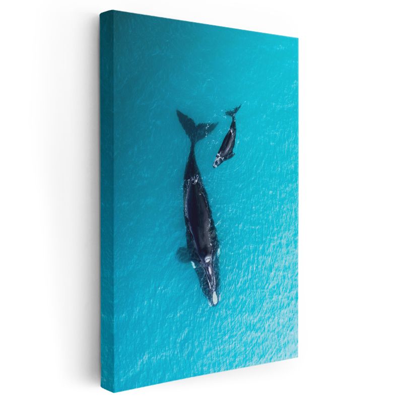 Okyanus Balinaları - Turkuaz Sularda Anne Yavru İkilisi Kanvas Tablo