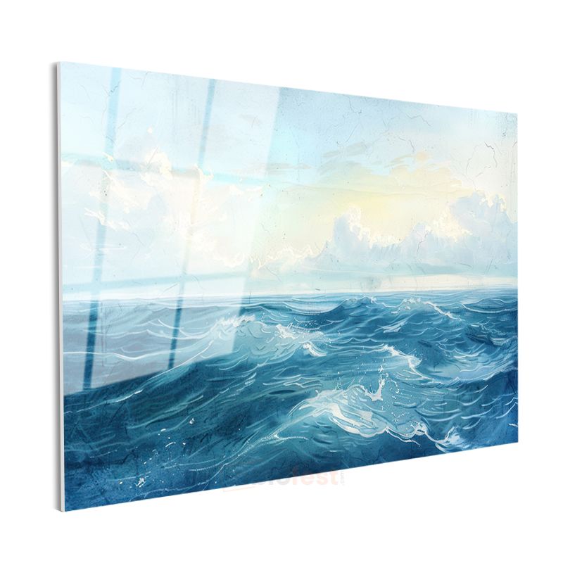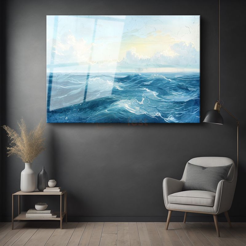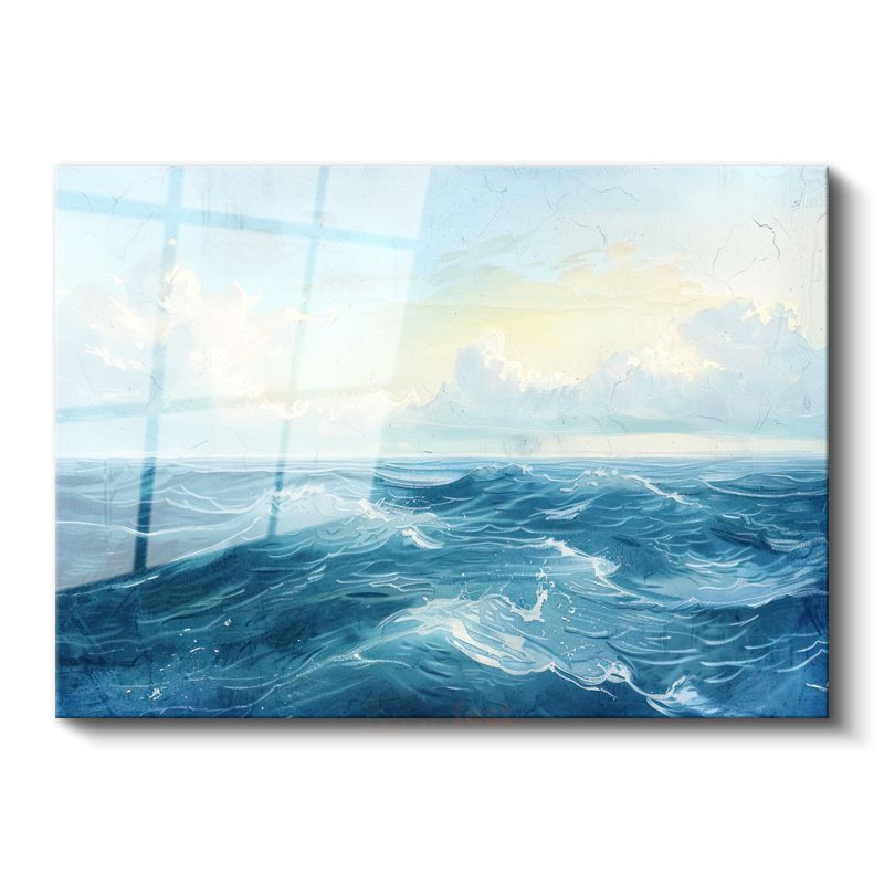 Okyanus Dalgaları - Huzur Veren Mavi Sonsuzluk Cam Tablo
