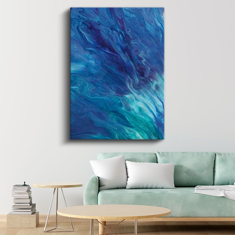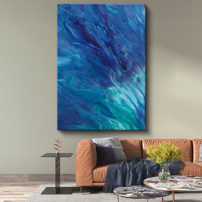 Okyanus Dalgaları - Mavi Tonlarında Akışkan Soyut Kanvas Tablo