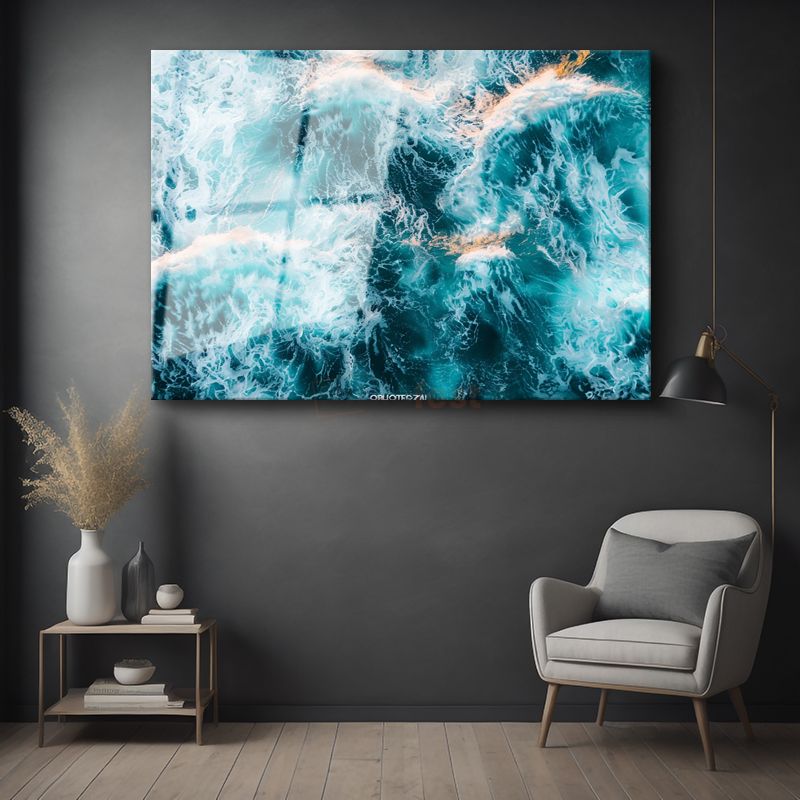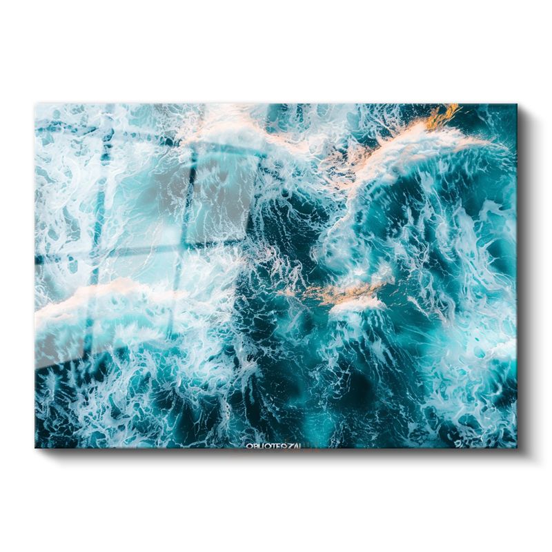 Okyanus Dalgaları - Turkuaz Sular ve Beyaz Köpükler Cam Tablo