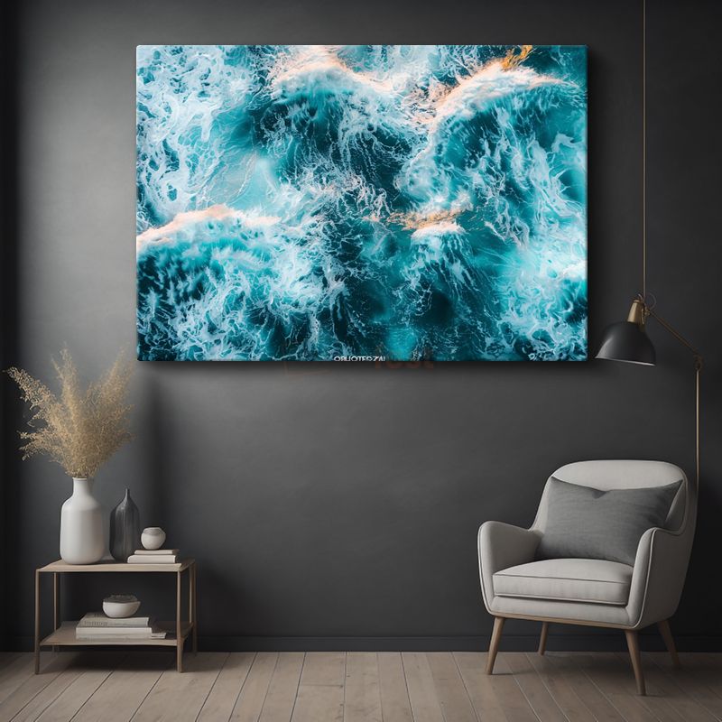 Okyanus Dalgaları - Turkuaz Sular ve Beyaz Köpükler Kanvas Tablo