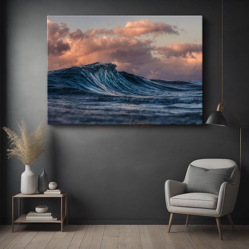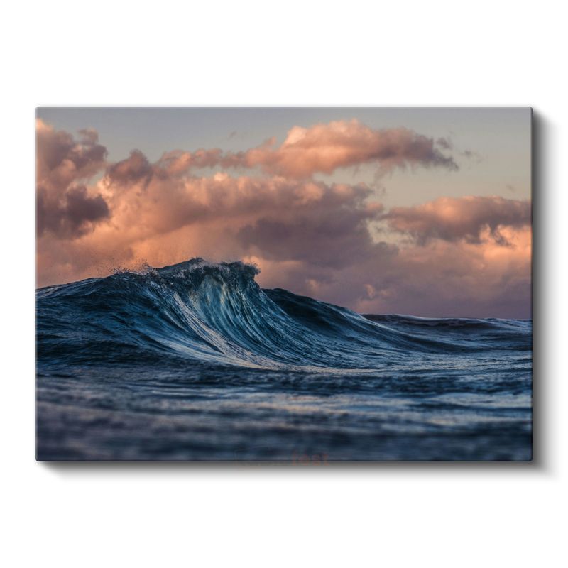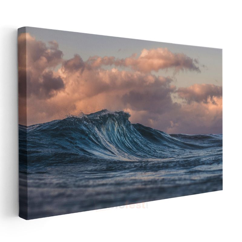Okyanus Dalgası - Gün Batımında Mavi Sular Kanvas Tablo