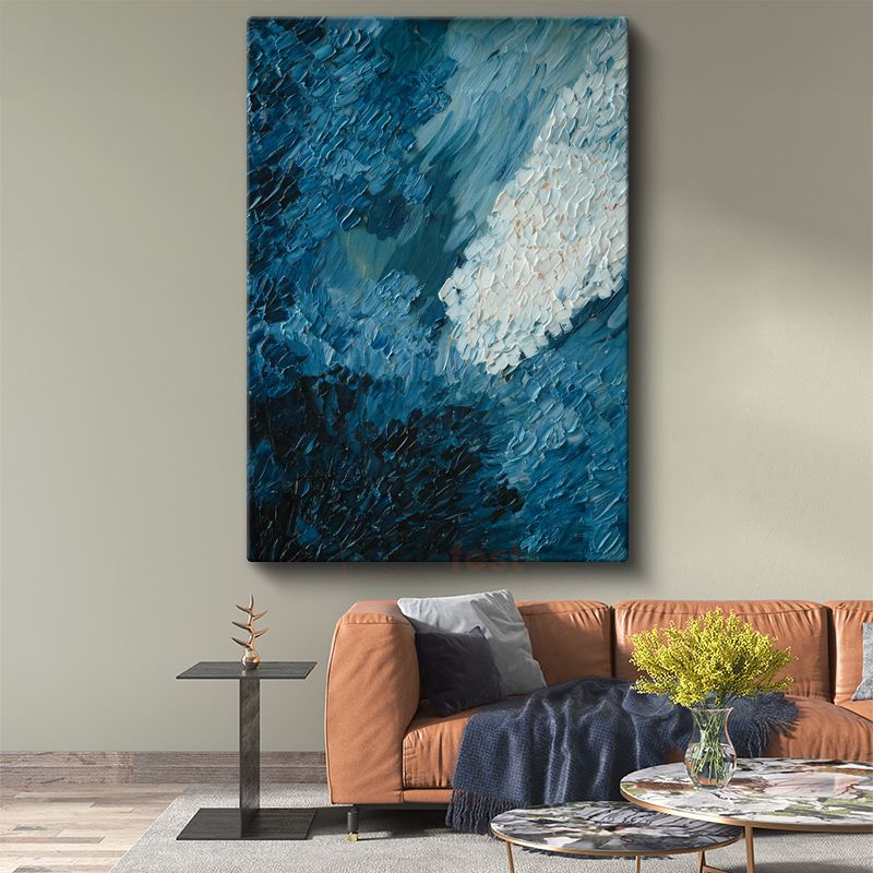 Okyanus Derinliği - Dokulu Mavi Dalgalar Kanvas Tablo