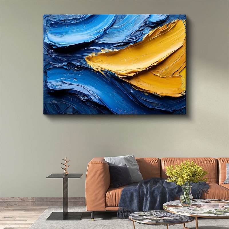 Okyanus Derinliği - Mavi Sarı Kontrast Dokulu Soyut Kanvas Tablo