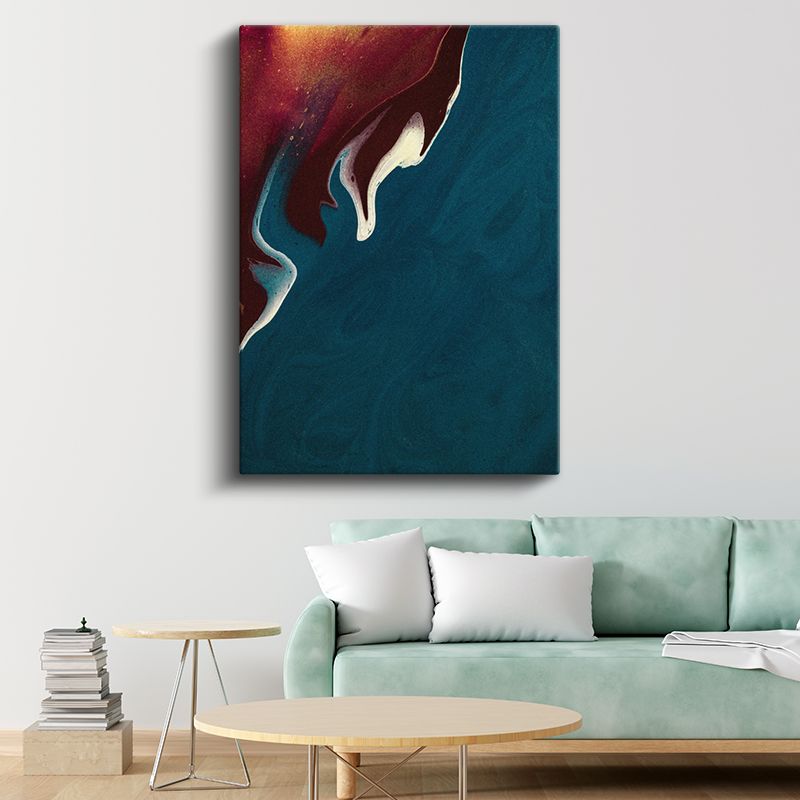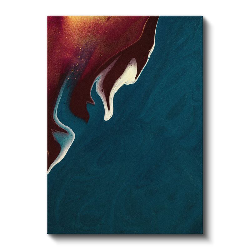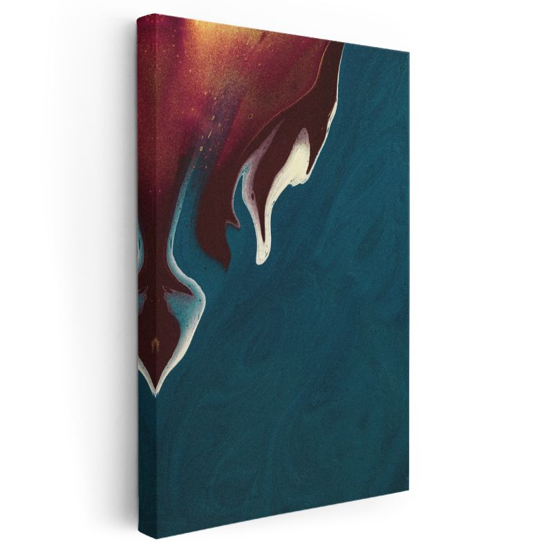 Okyanus Derinliği - Mavi ve Kırmızı Tonlarında Akışkan Kontrast Kanvas Tablo