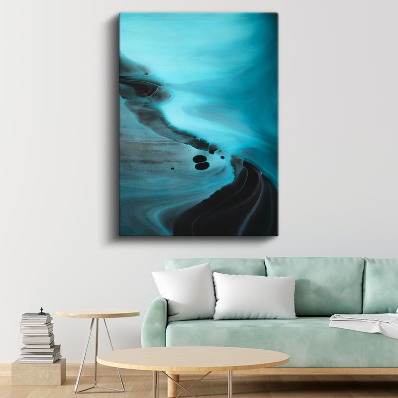 Okyanus Derinliği - Turkuaz Akışkan Formlar Kanvas Tablo