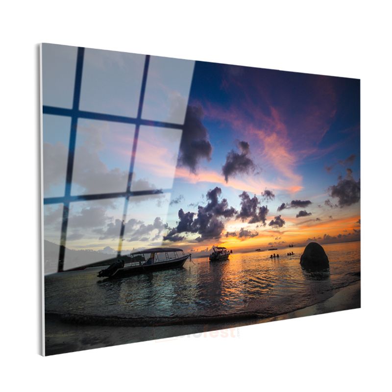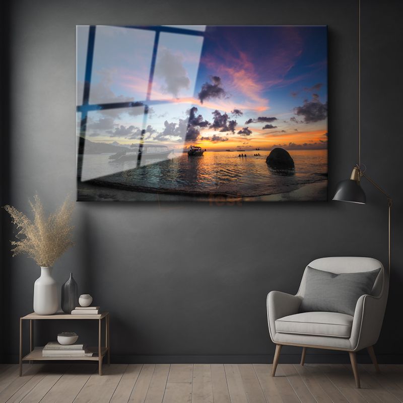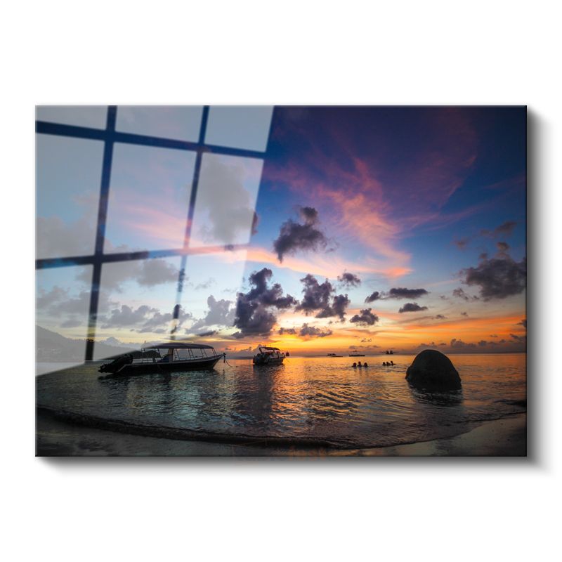 Okyanus Günbatımı - Renkli Gökyüzü ve Deniz Manzarası Cam Tablo