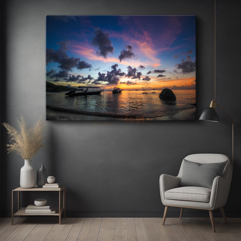 Okyanus Günbatımı - Renkli Gökyüzü ve Deniz Manzarası Kanvas Tablo
