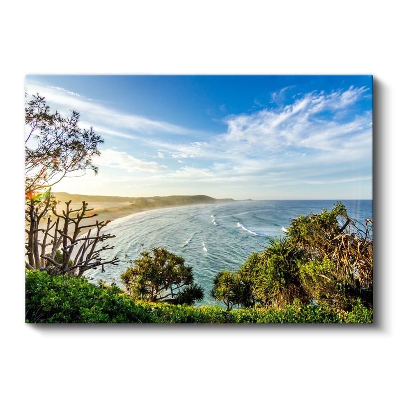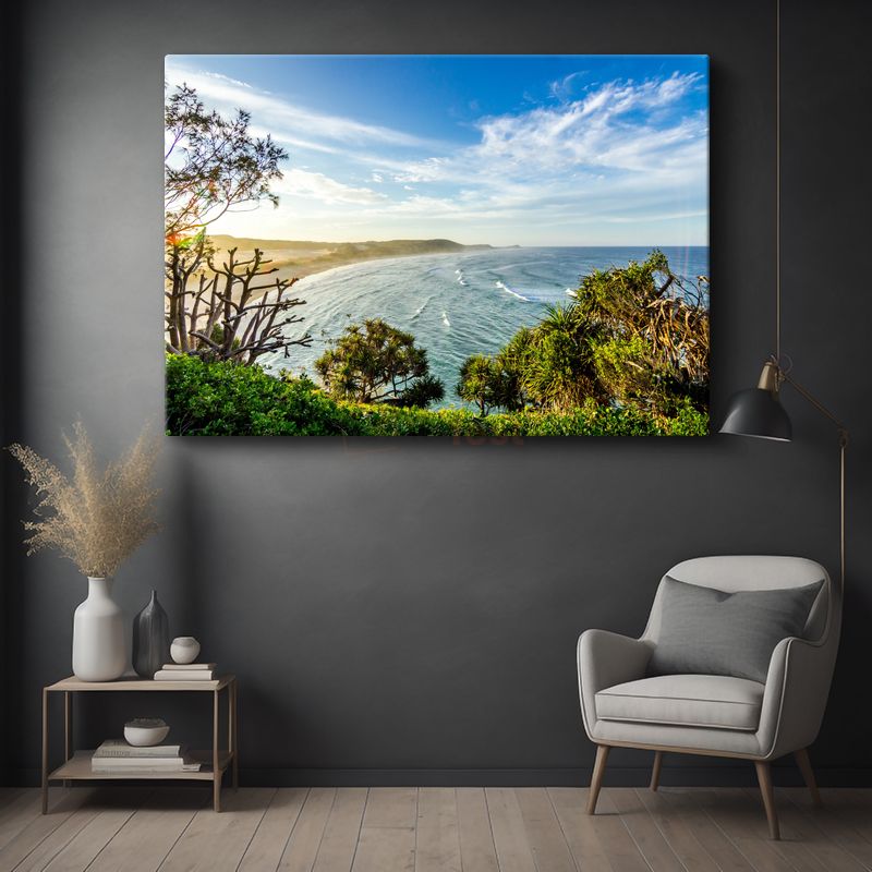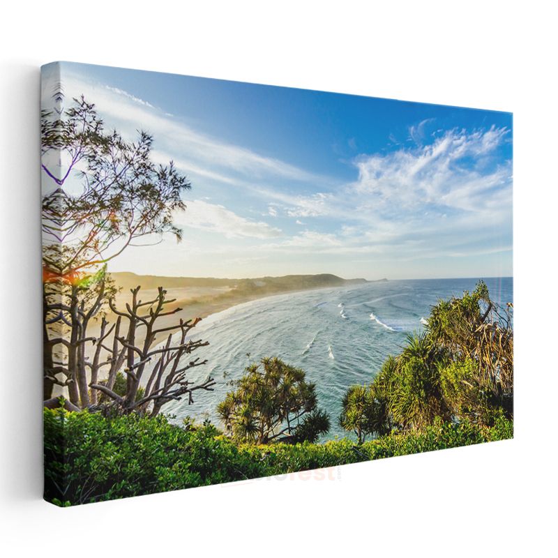 Okyanus Kıyısı - Turkuaz Dalgalar ve Yeşil Doğa Kanvas Tablo