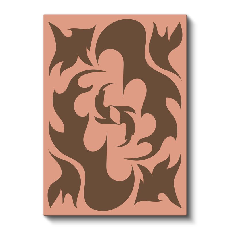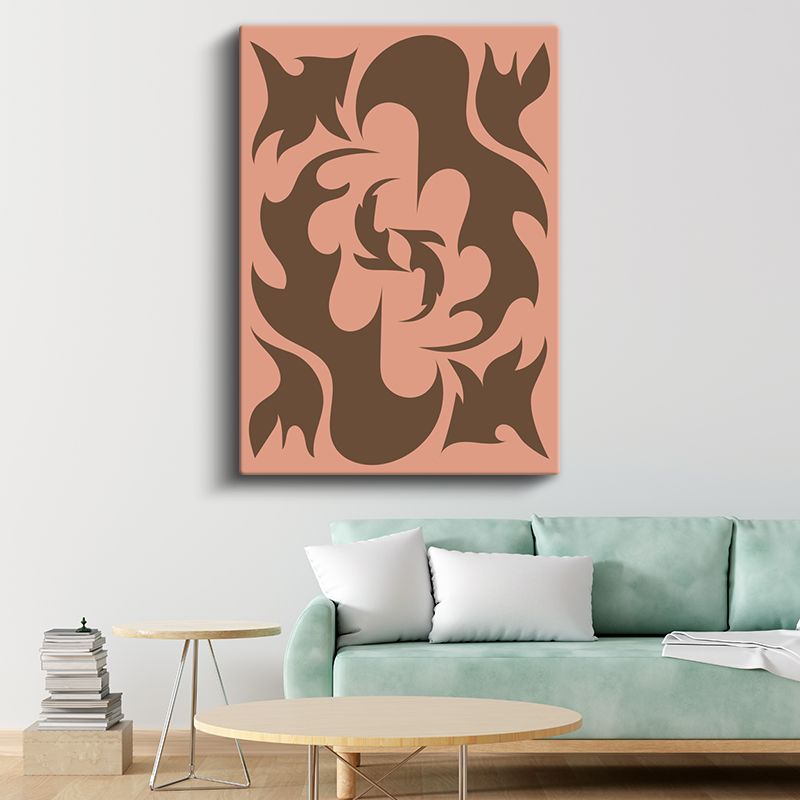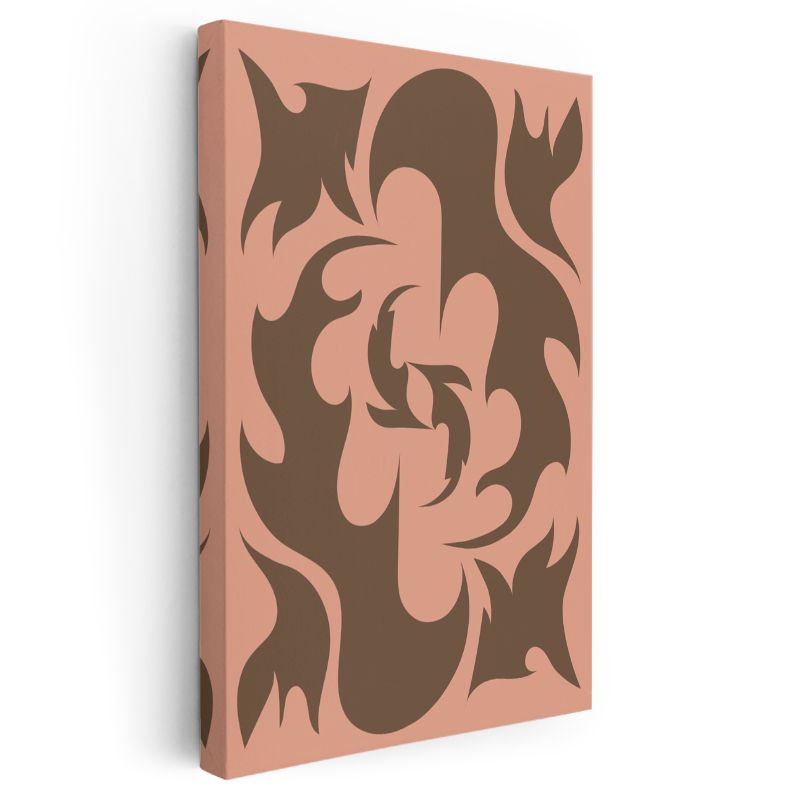 Organik Formlar - Pembe Zeminde Kahverengi Soyutlama Kanvas Tablo