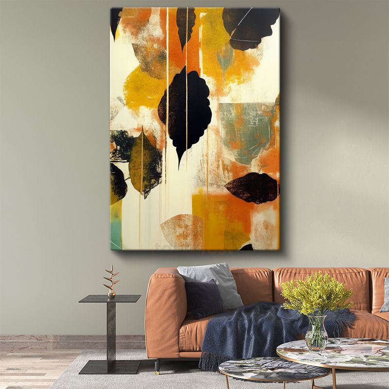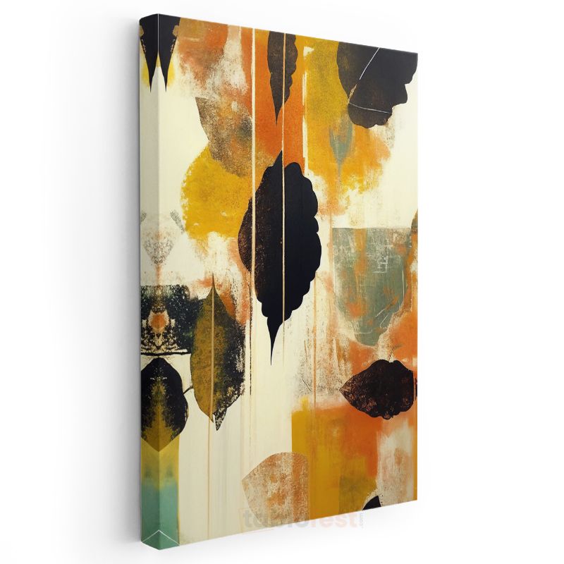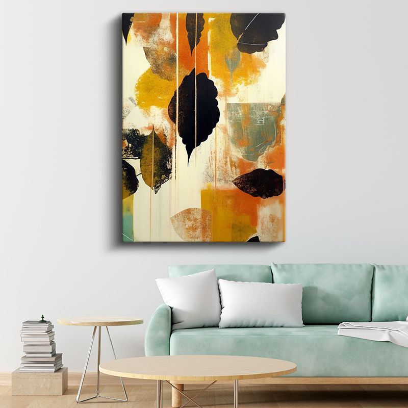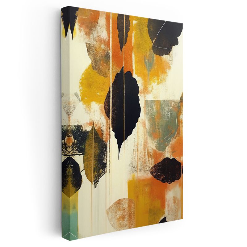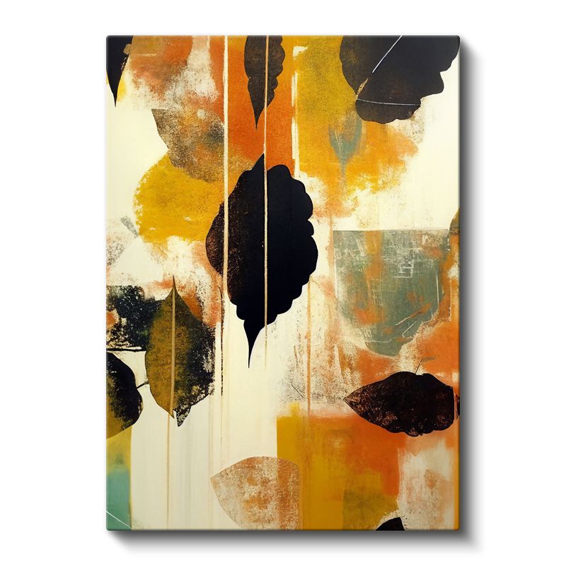 Organik Formlar - Sonbahar Renkleriyle Stilize Yaprak Siluetleri Kanvas Tablo