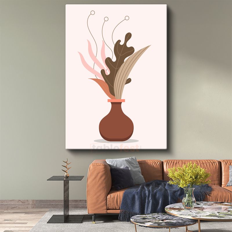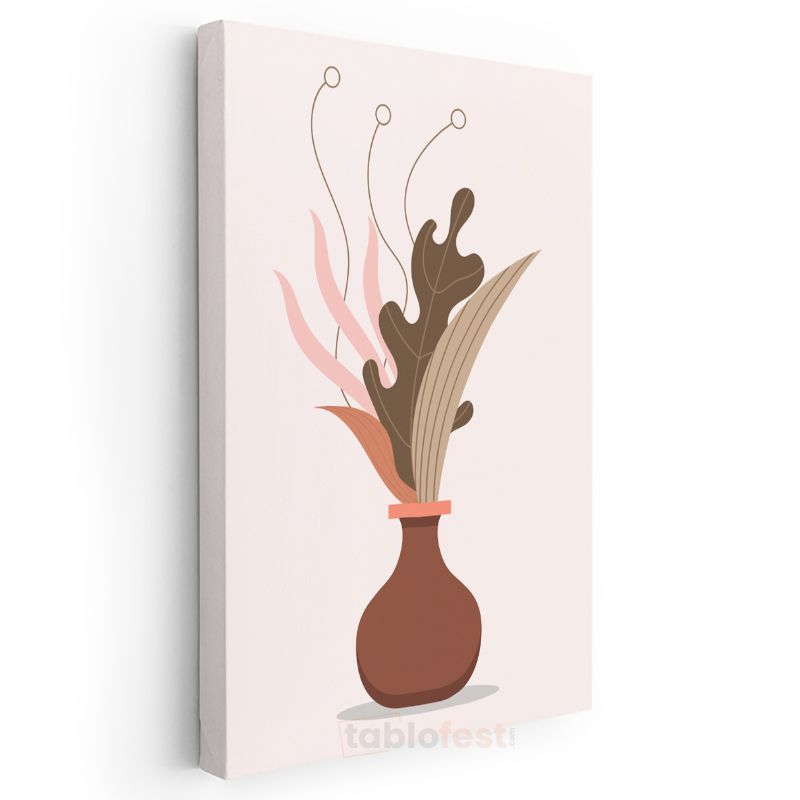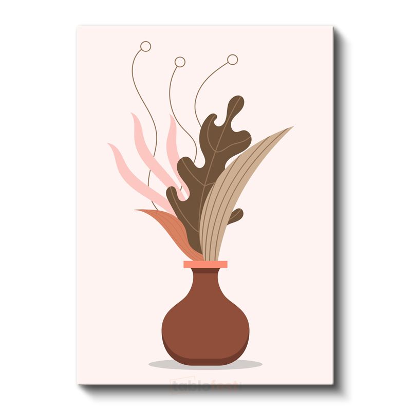 Organik Formlar - Vazo ve Stilize Yapraklar Kanvas Tablo