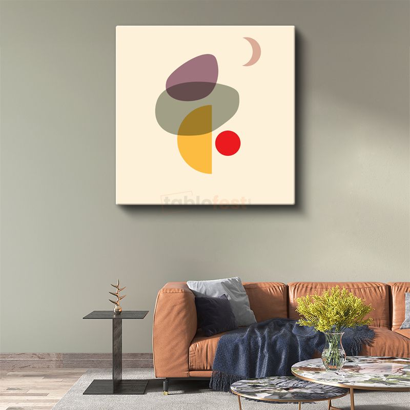 Organik Harmoni - Asimetrik Renkli Formlar ve Hilal Kanvas Tablo