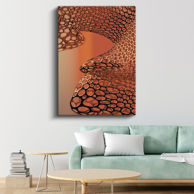 Organik Hücreler - Bakır Tonlarında Akışkan Doku Kanvas Tablo