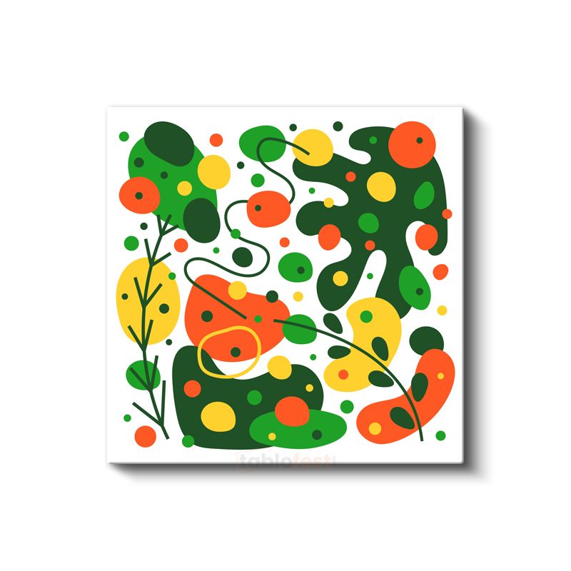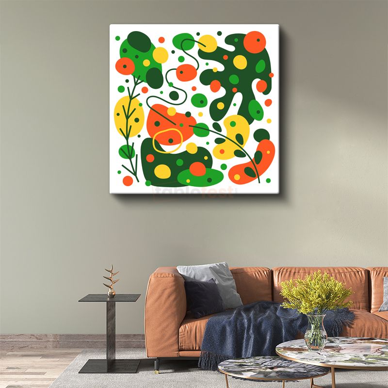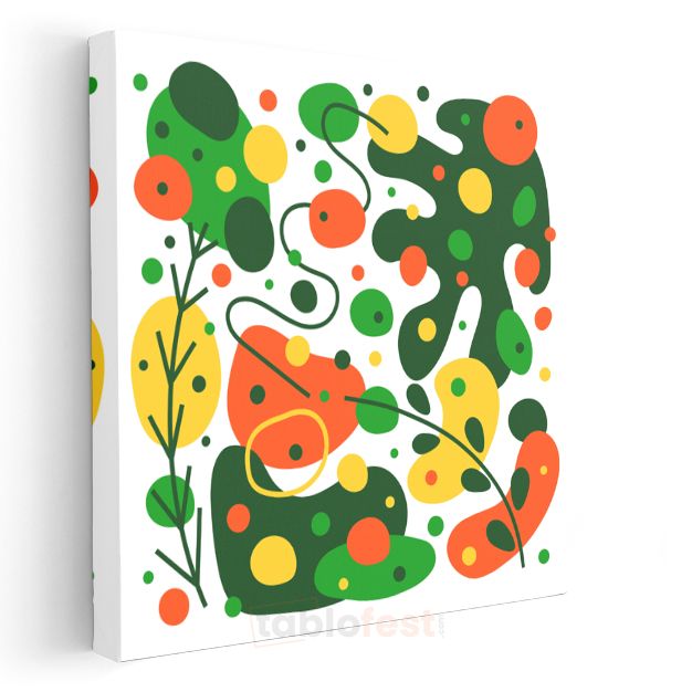 Organik Soyutlama - Canlı Yeşil Turuncu Dinamik Şekiller Kanvas Tablo