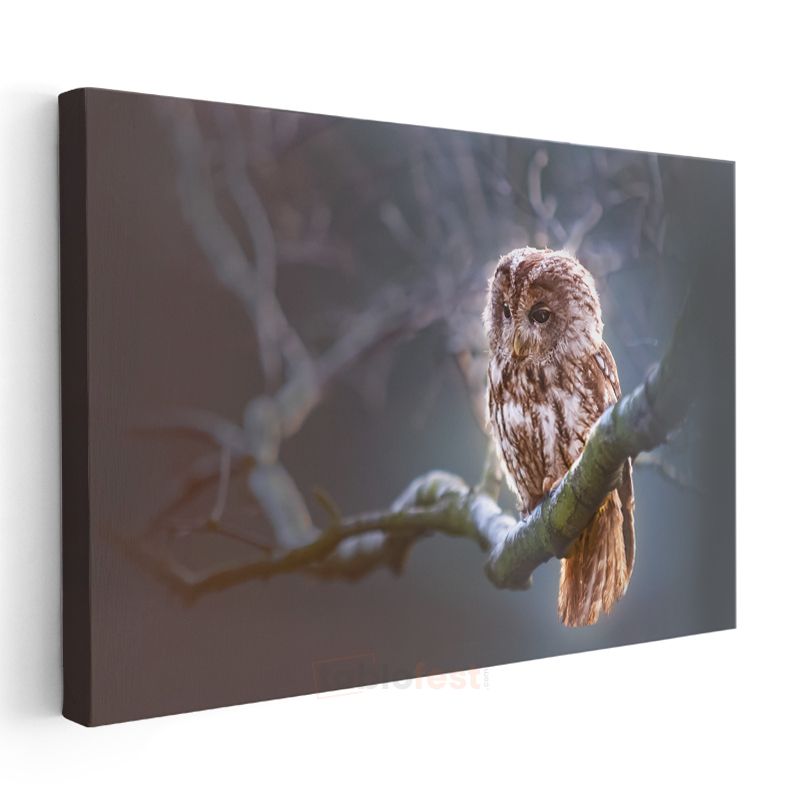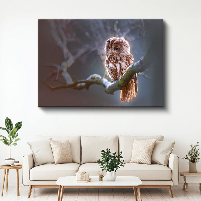 Orman Baykuşu - Ağaç Dalında Bilge Bakışlar Kanvas Tablo