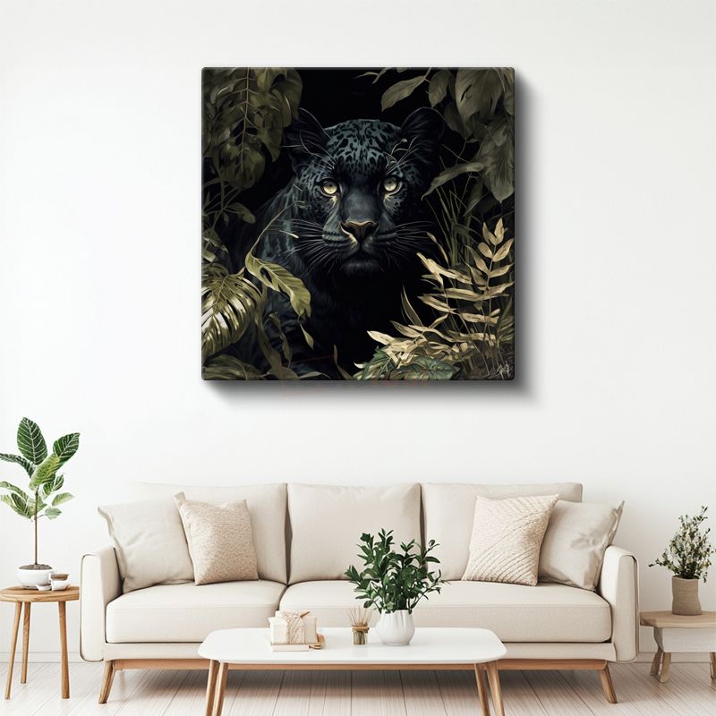 Orman Bekçisi Panter - Yapraklar Arasından Bakan Keskin Bakışlı Avcı Kanvas Tablo