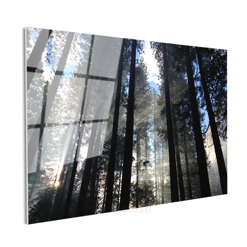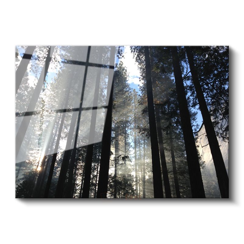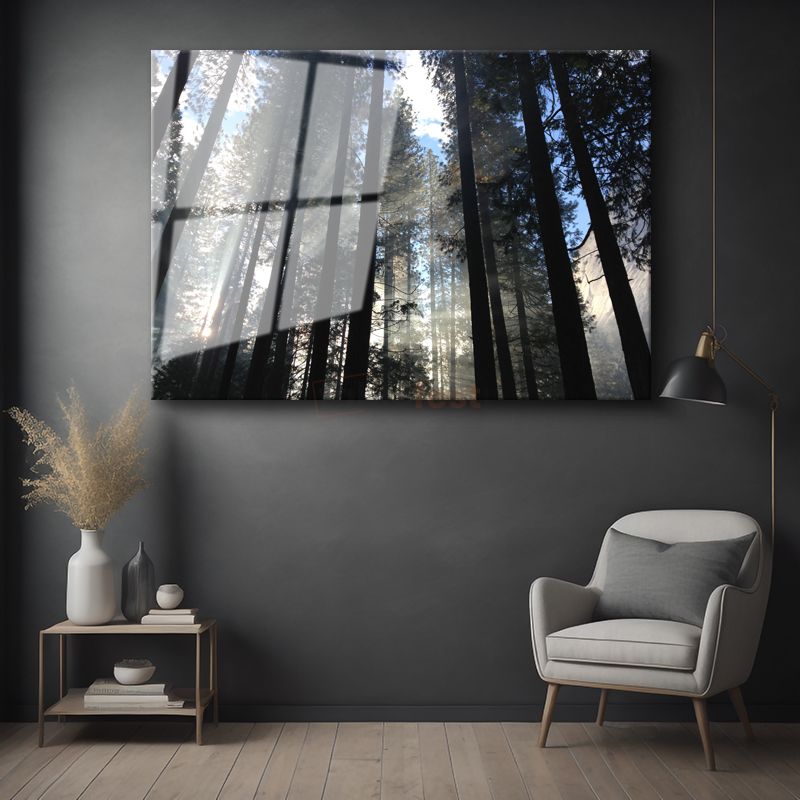Orman Derinliği - Güneş Işınlarıyla Dans Eden Çam Ağaçları Cam Tablo