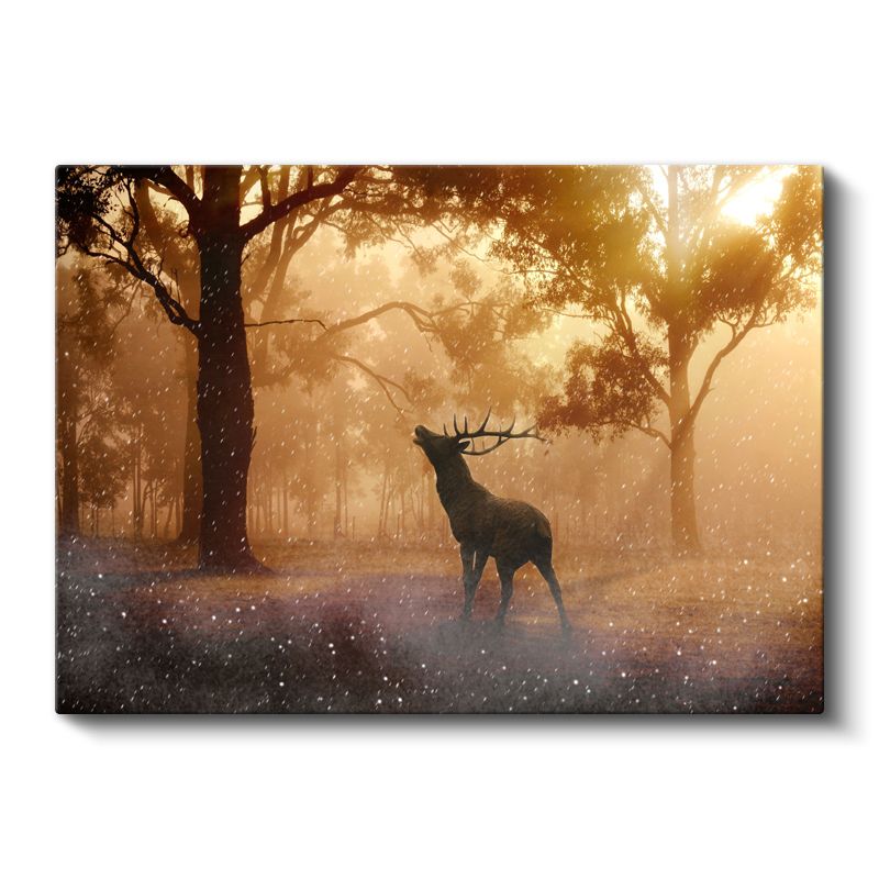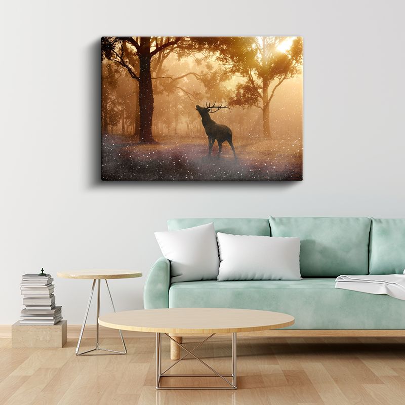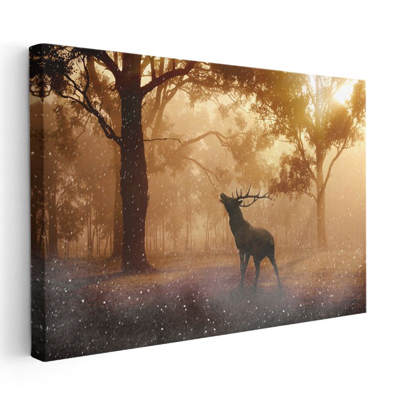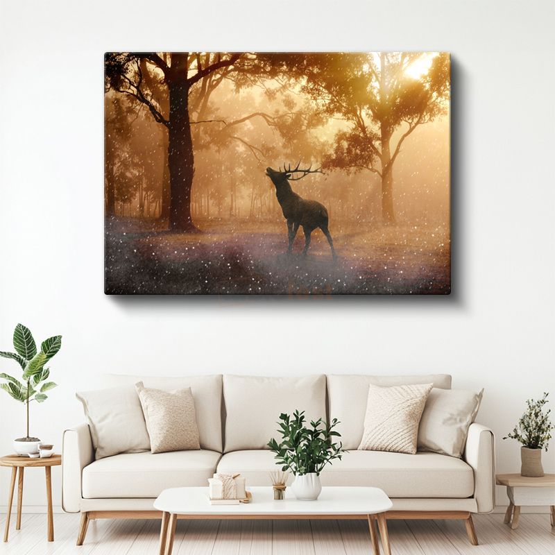 Orman Geyiği - Sisli Ağaçlar Arasında Yaban Hayatı Kanvas Tablo