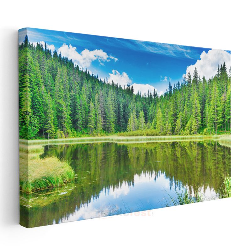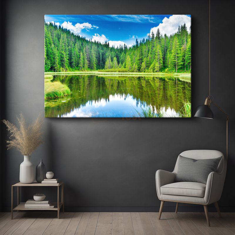 Orman Gölü - Çam Ağaçları ve Yansımalar Kanvas Tablo