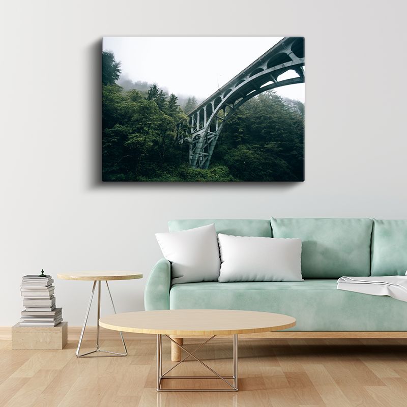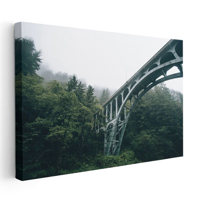 Orman Köprüsü - Sisli Doğada Taş Mimari Kanvas Tablo