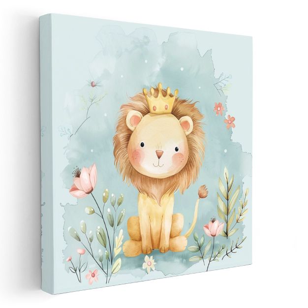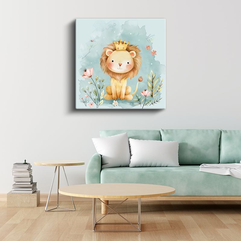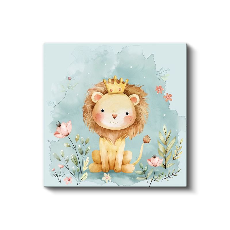 Orman Kralı - Taçlı Sevimli Aslan Kanvas Tablo