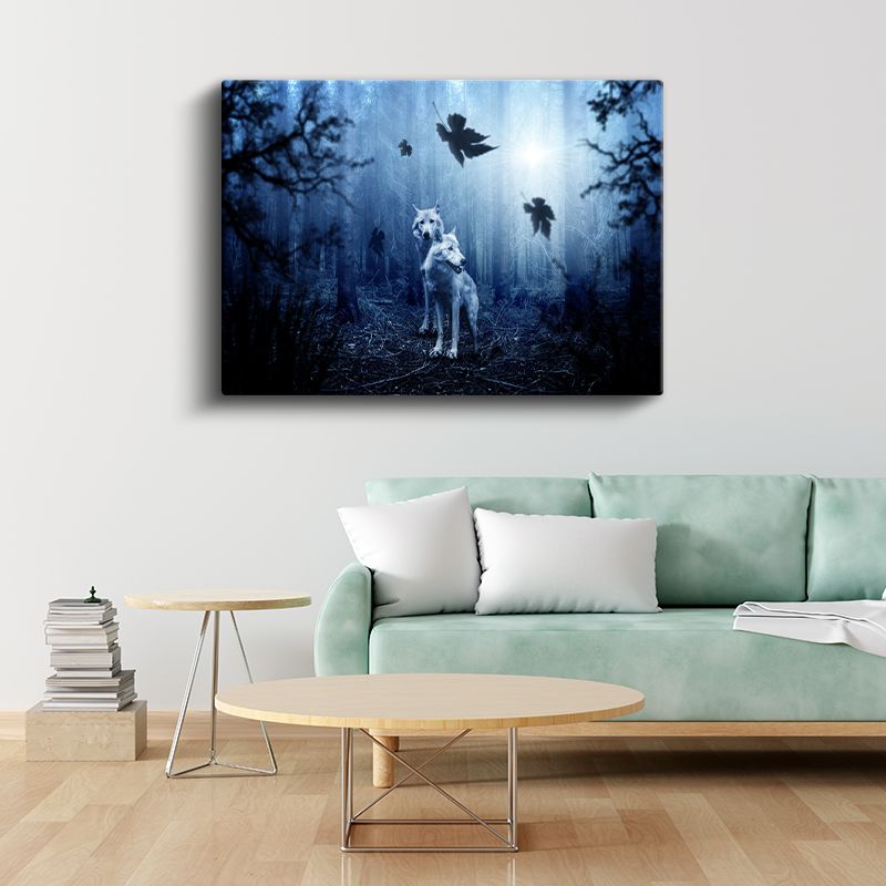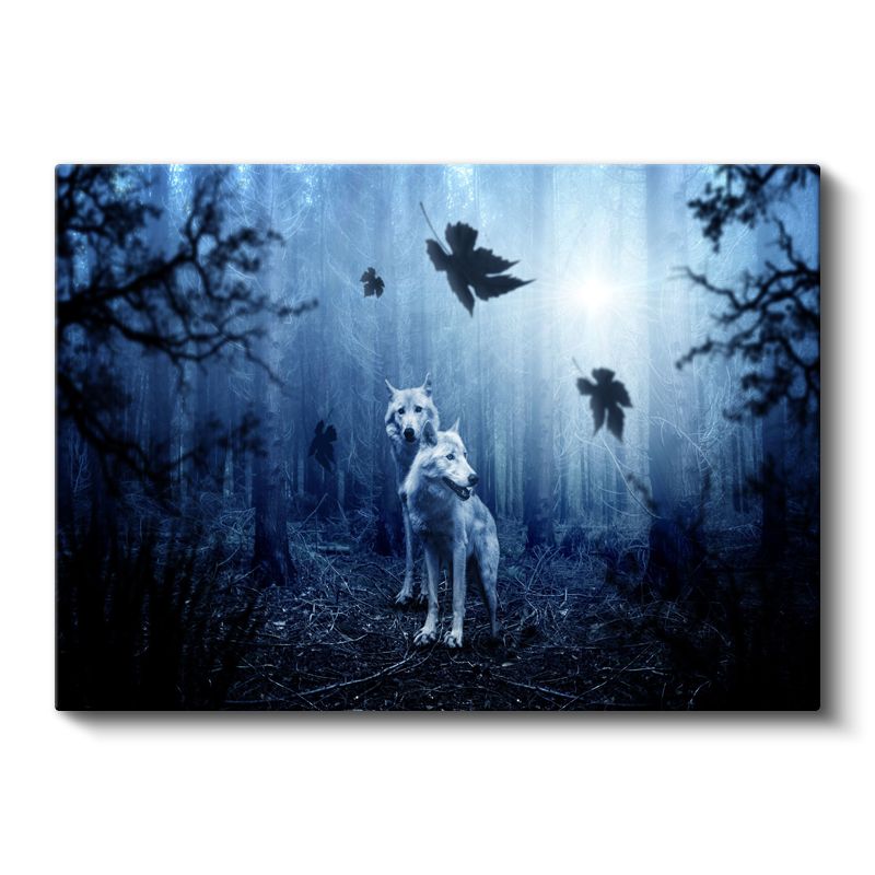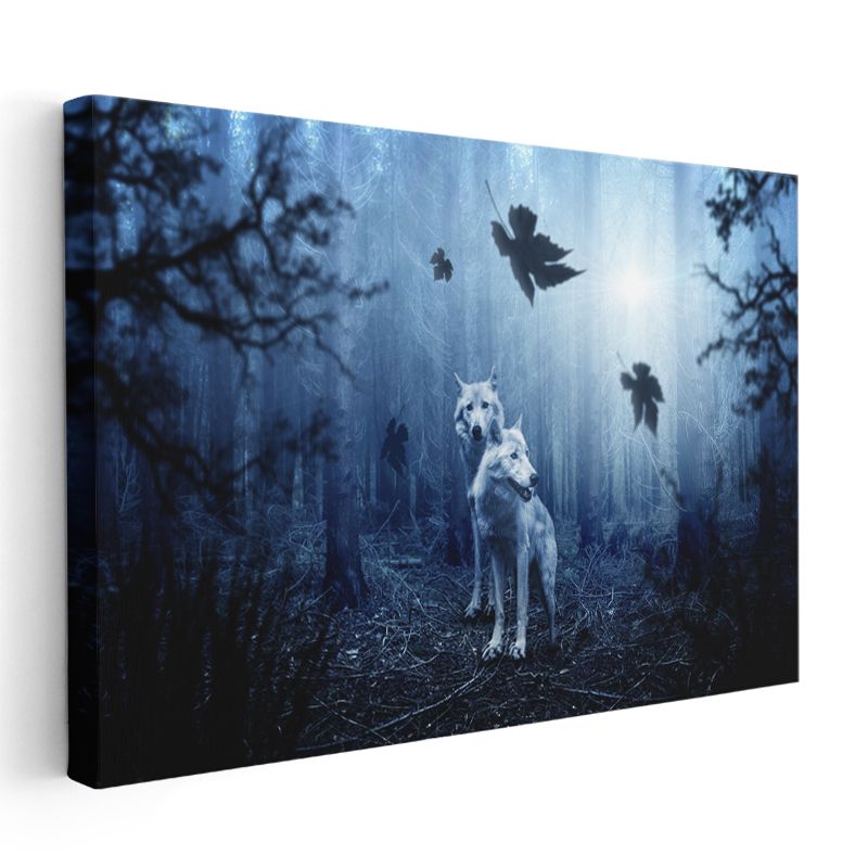 Orman Kurtları - Beyaz Tüylü İkili Kanvas Tablo