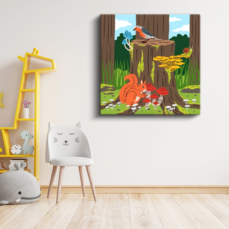 Orman Macerası - Sincap ve Mantar Dostluğu Kanvas Tablo