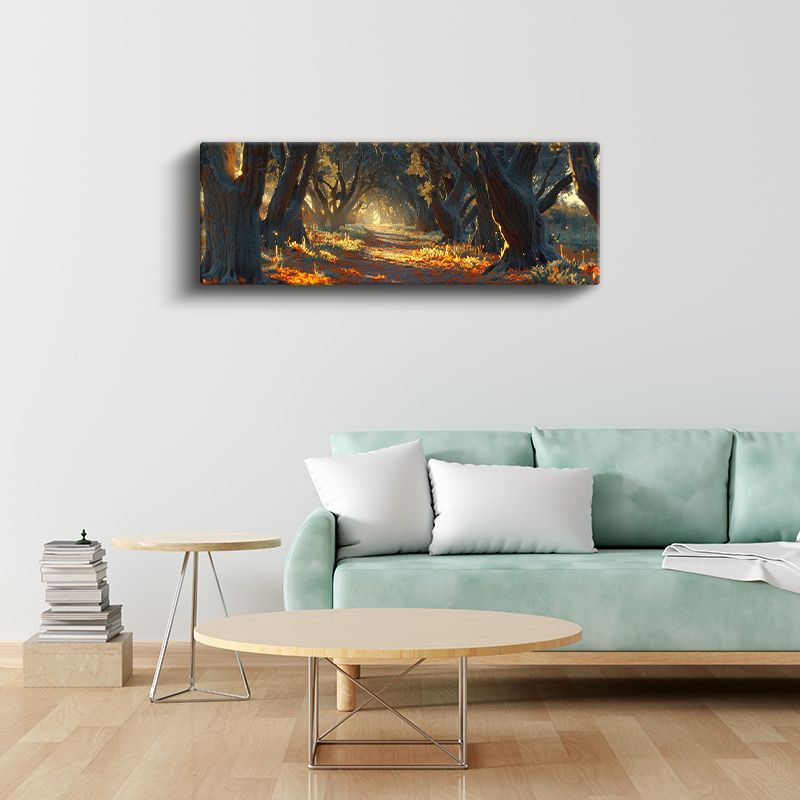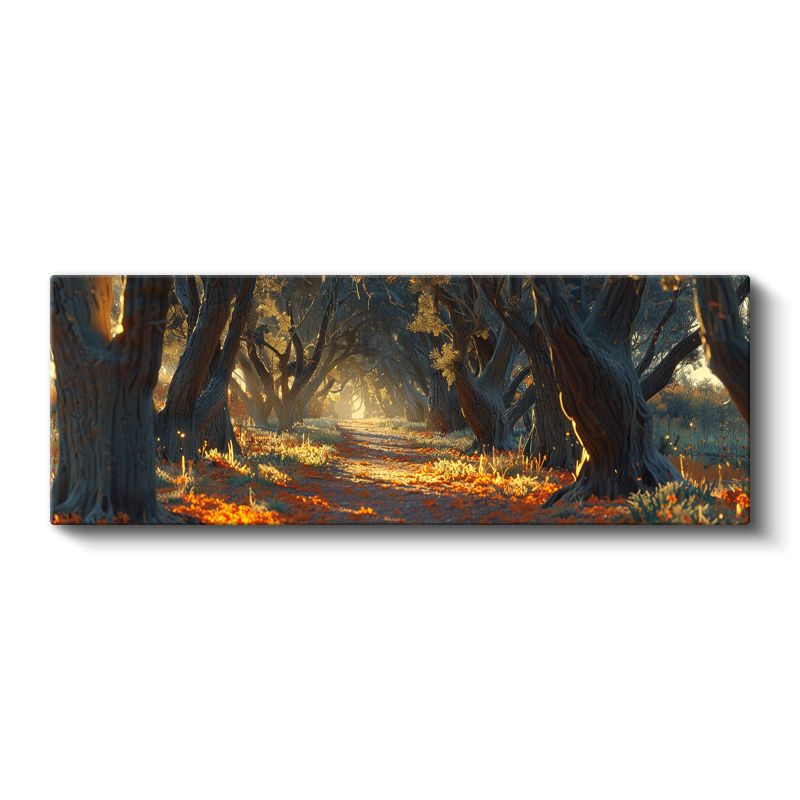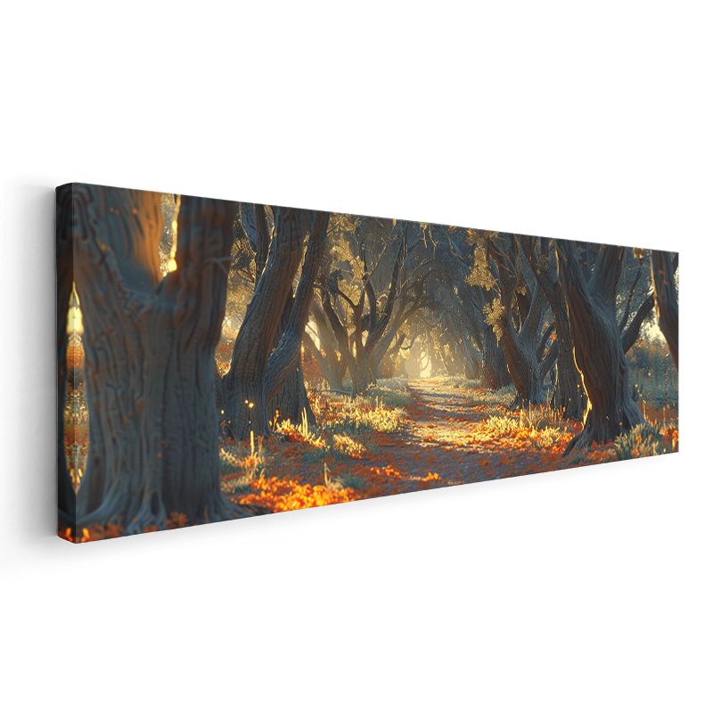 Orman Patikası - Altın Işıkla Aydınlanan Ağaçlar Kanvas Tablo