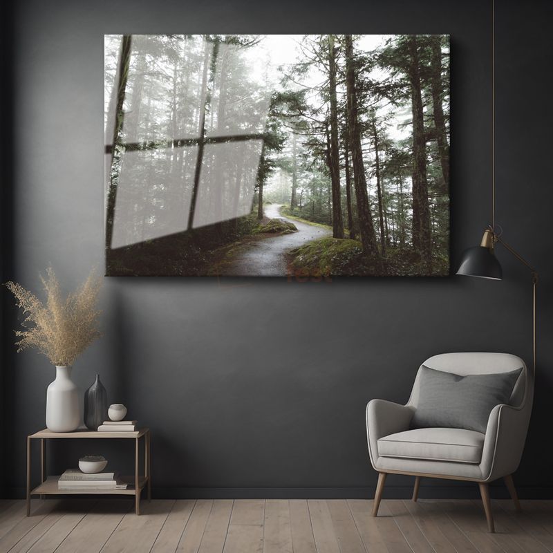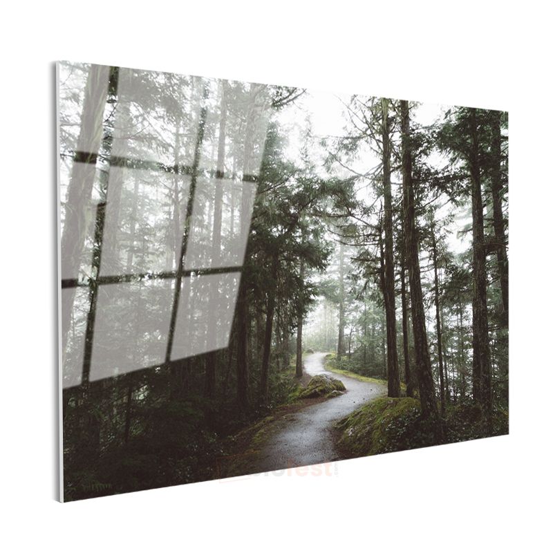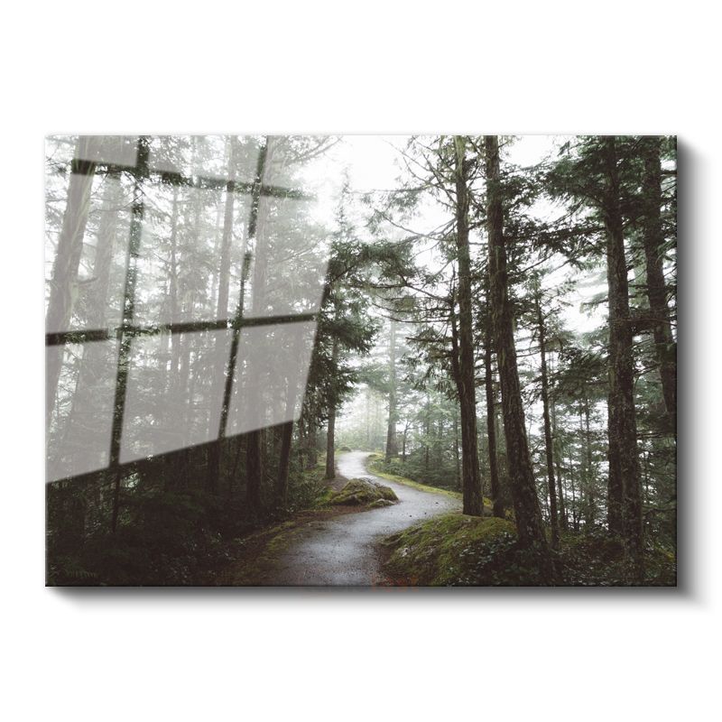 Orman Patikası - Sisli Çam Ormanında Kıvrılan Yol Cam Tablo