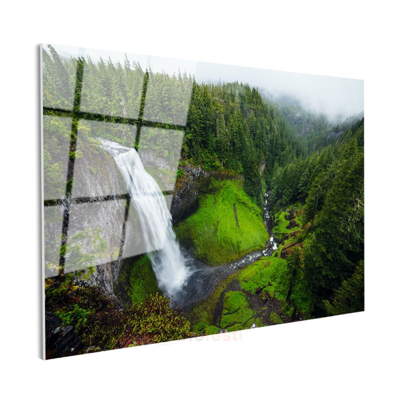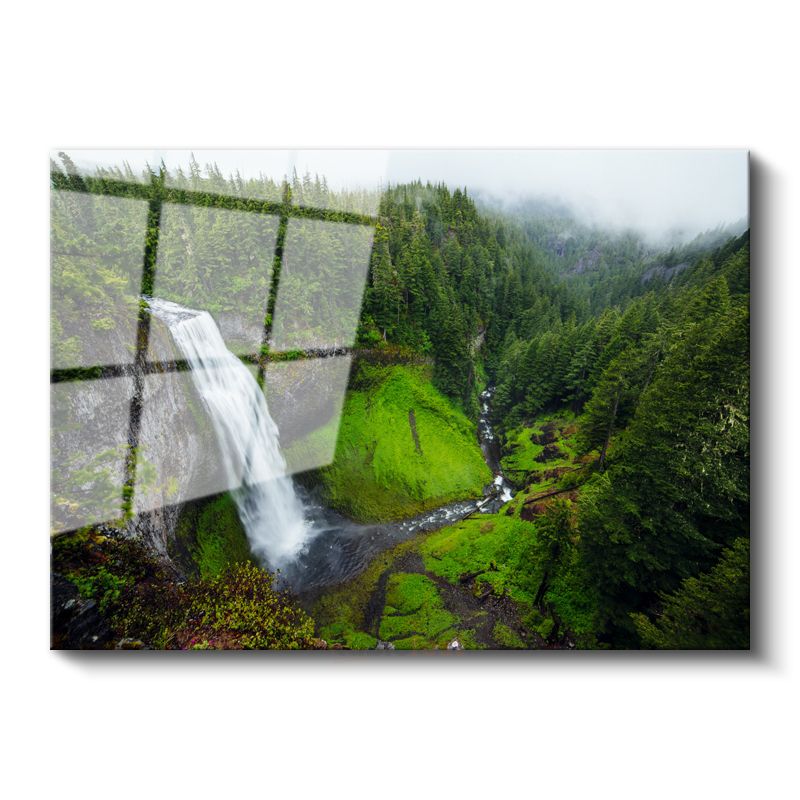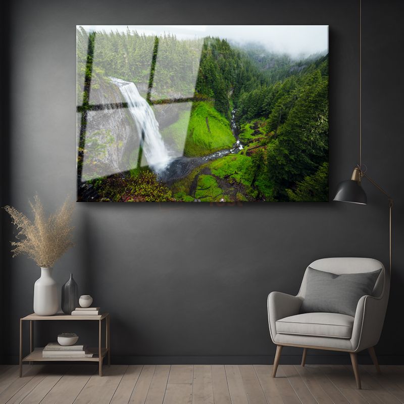 Orman Şelalesi - Yemyeşil Vadide Akan Görkemli Su Cam Tablo
