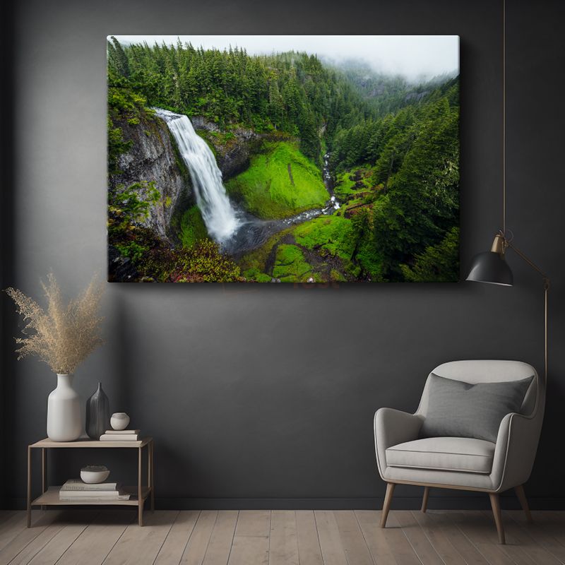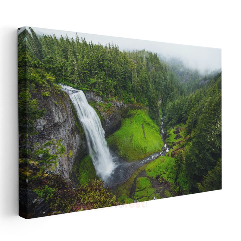 Orman Şelalesi - Yemyeşil Vadide Akan Görkemli Su Kanvas Tablo