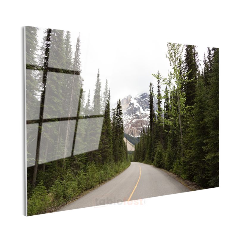 Orman Yolu - Çam Ağaçları Arasından Dağa Uzanan Patika Cam Tablo
