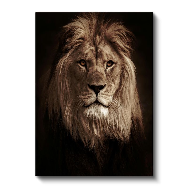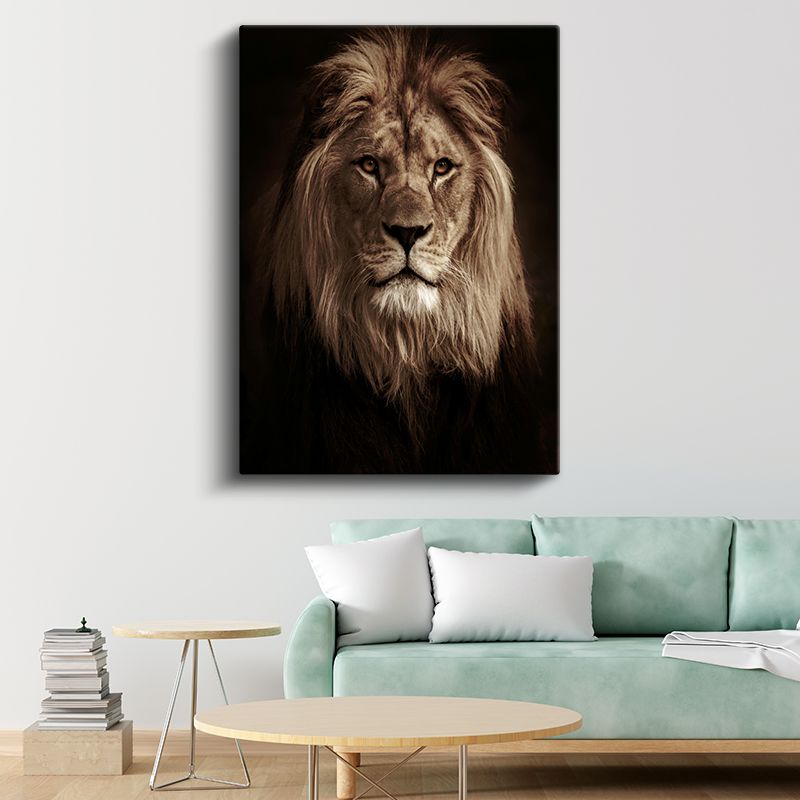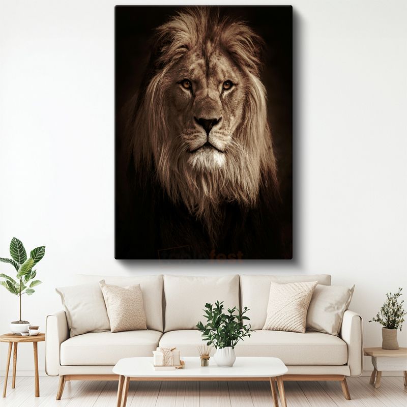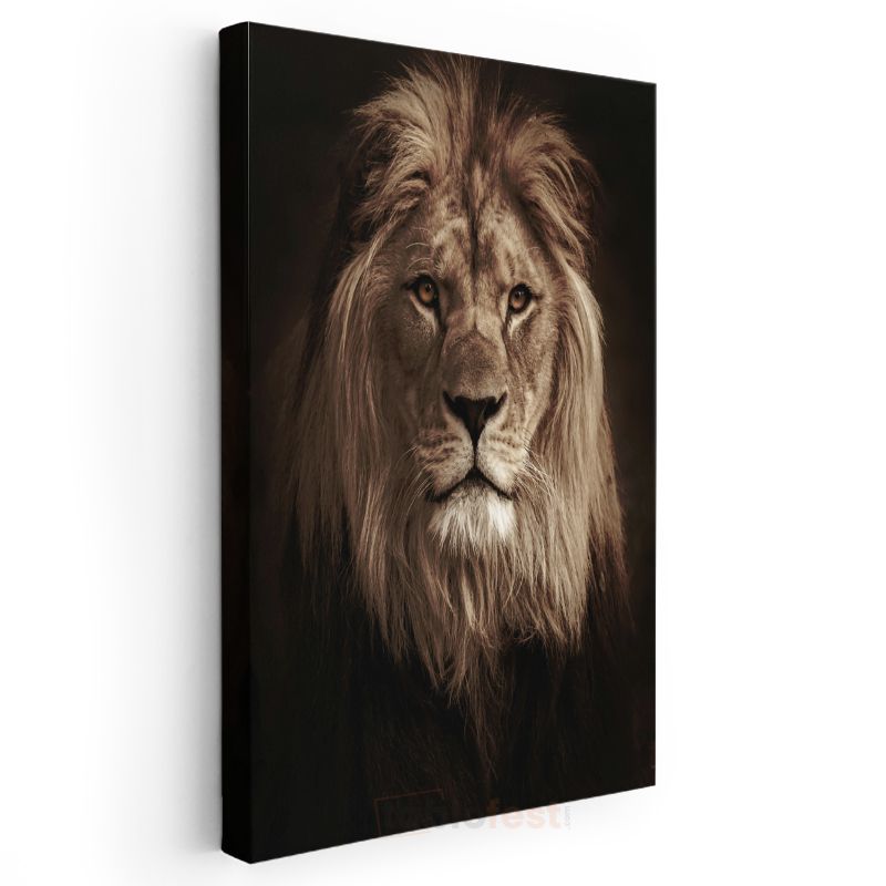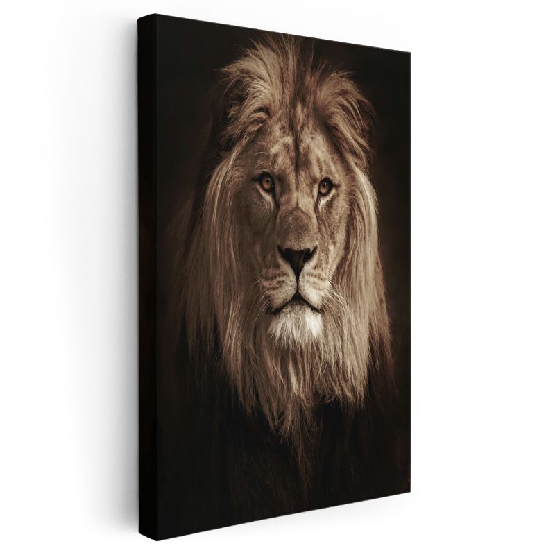 Ormanlar Kralı - Kahverengi Tonlarında Asil Aslan Kanvas Tablo
