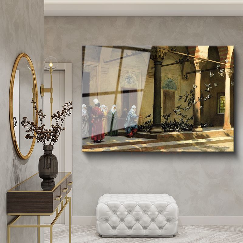 Osman Hamdi Bey - Güvercinli Avlu Cam Tablo