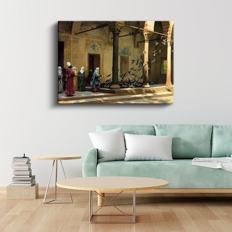 Osman Hamdi Bey - Güvercinli Avlu Kanvas Tablo