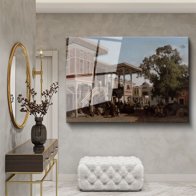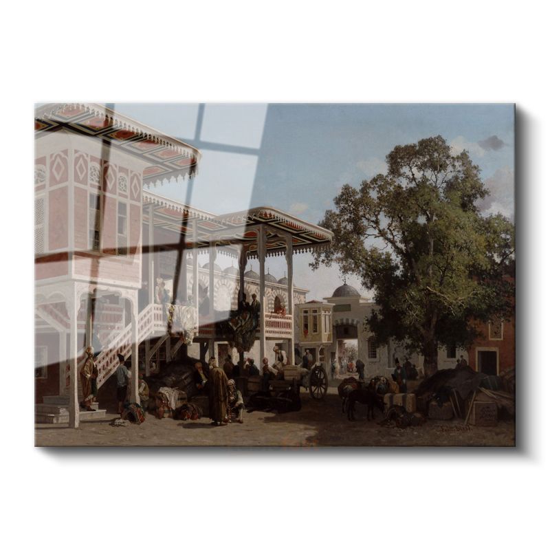 Osman Hamdi Bey - Osmanlı Konağı Avlusu Cam Tablo