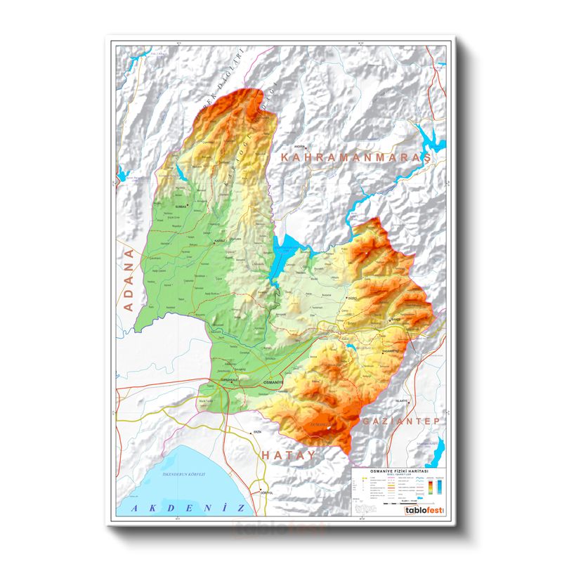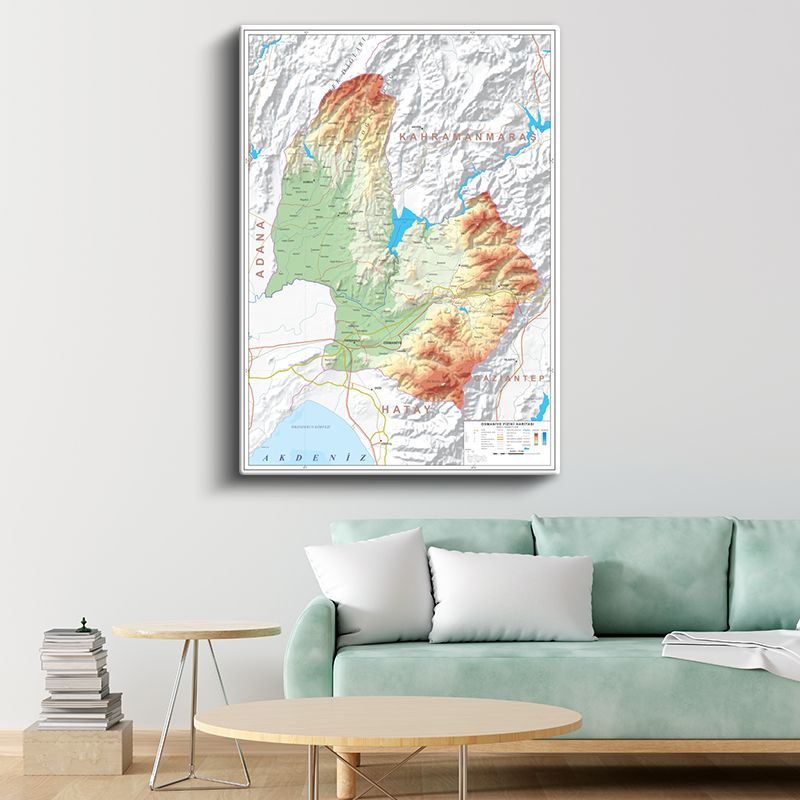 Osmaniye - Fiziki Haritası Kanvas Tablo