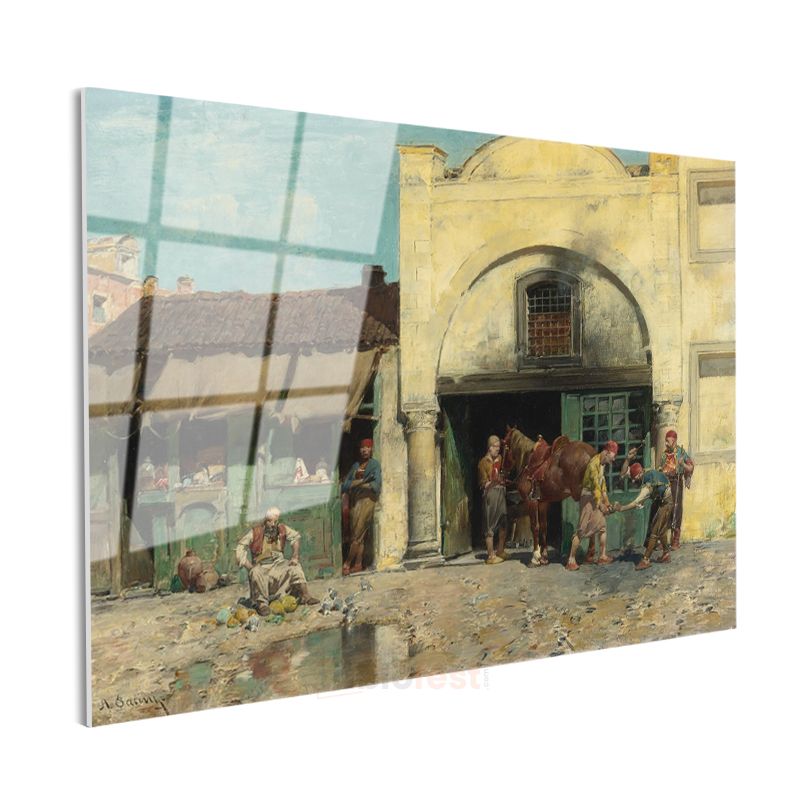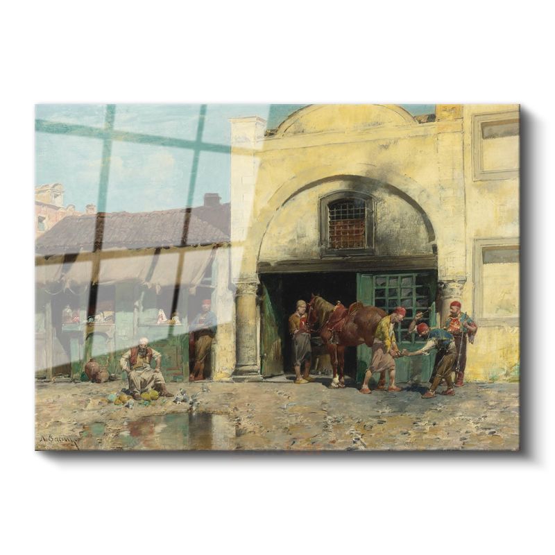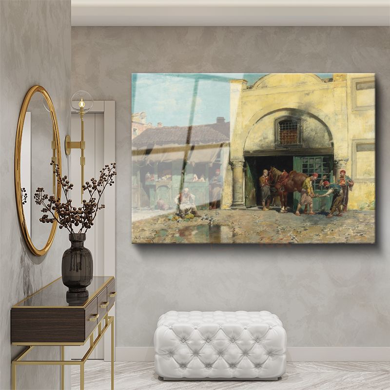 Osmanlı Çarşısı - Nalbant Dükkanı Önünde Günlük Yaşam Cam Tablo