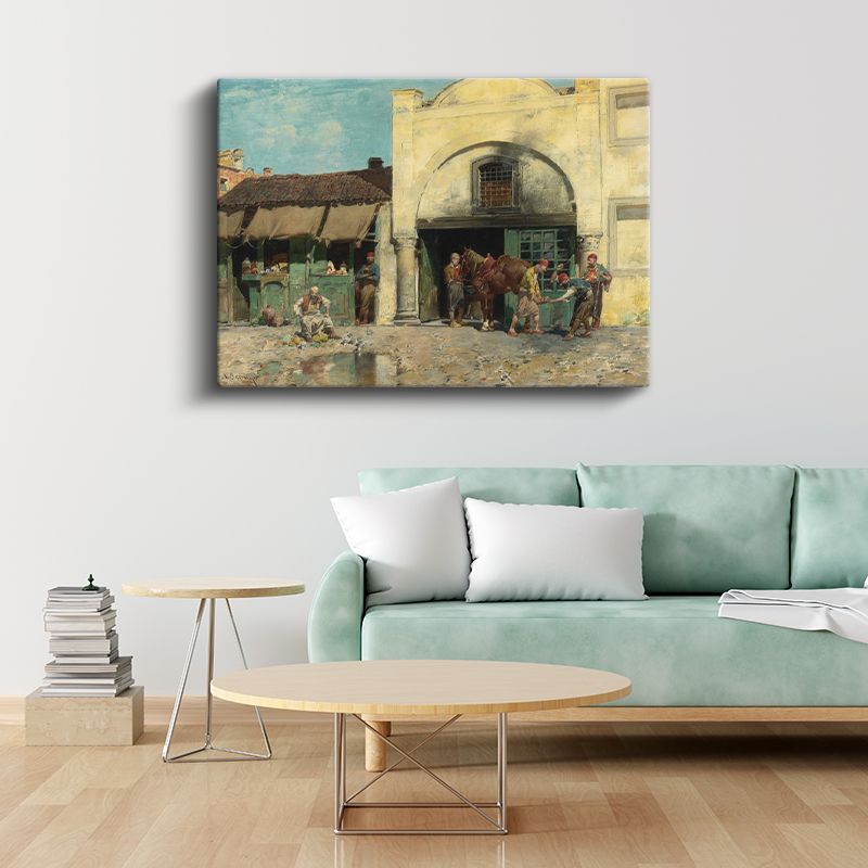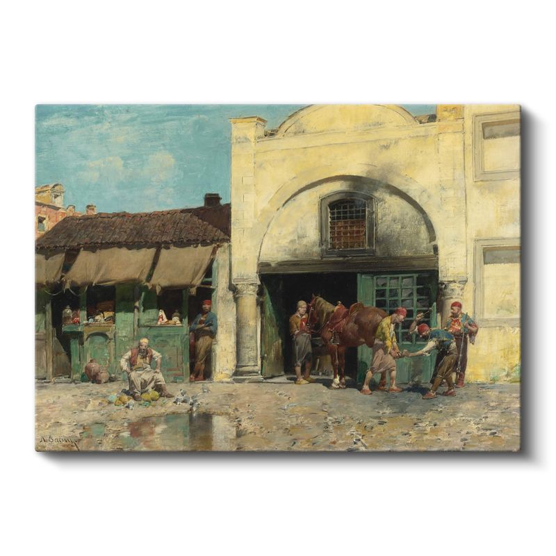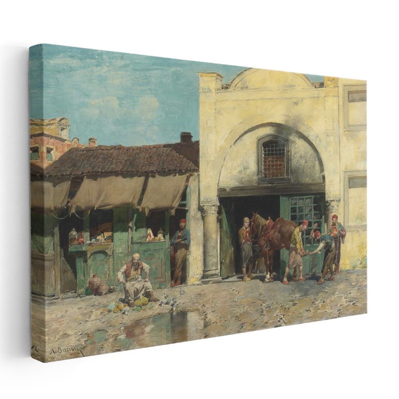Osmanlı Çarşısı - Nalbant Dükkanı Önünde Günlük Yaşam Kanvas Tablo